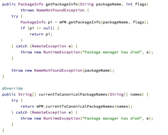 so package name... one option is to modify the package name to anything that does not exist, so that we can bypass this... other option is to return something that will benefit us. in this case is to throw an exception...