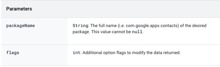 Well, if you think a bit about this function it receives a package name and some flags that we could not care less...