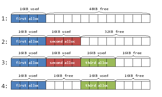 It can be used in blocks up to 16kb and it allocates the blocks in predetermined size ranges by putting those blocks into buckets.